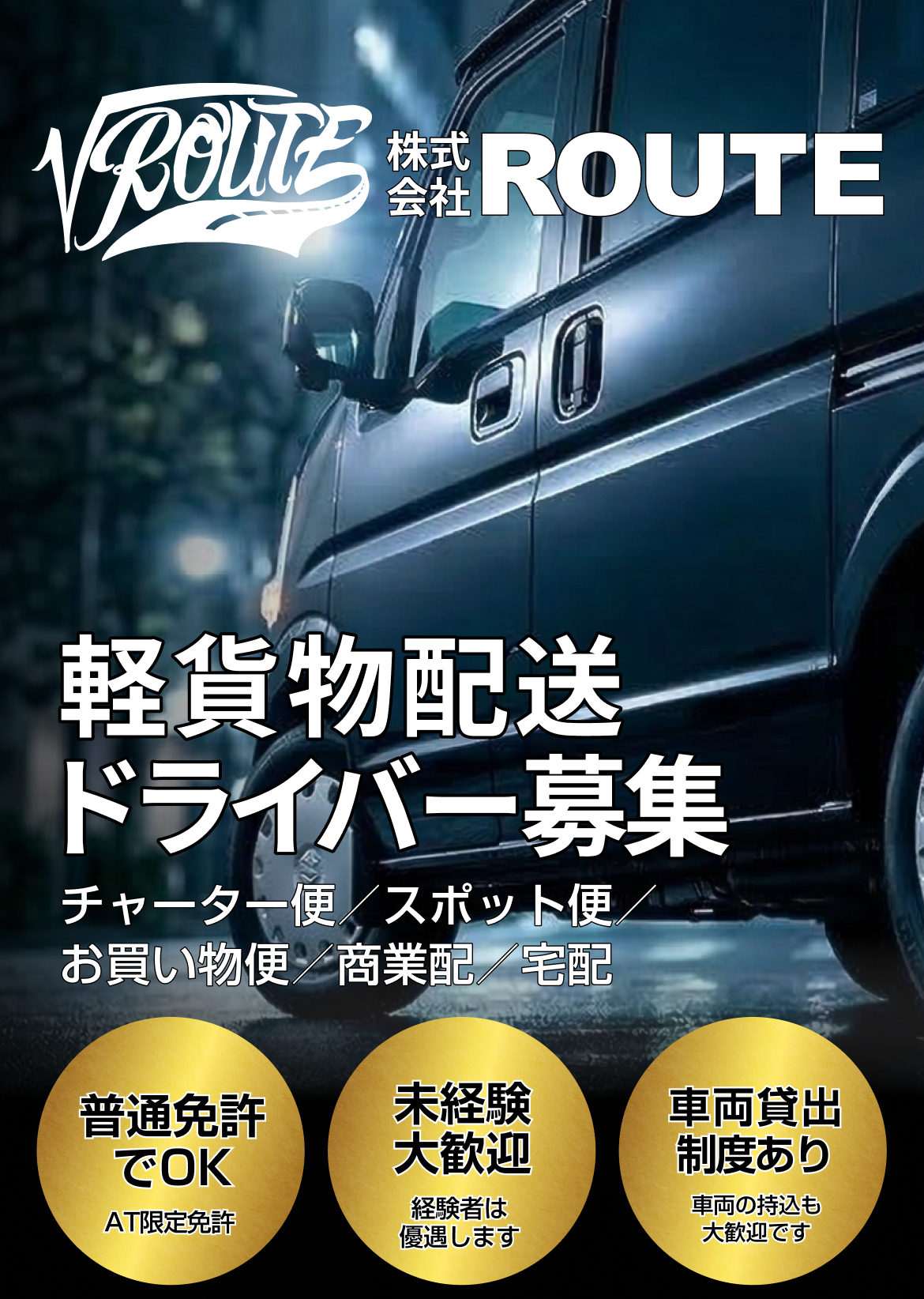 株式会社ROUTEでは、八尾、平野、生野、住吉エリアを中心に軽配送ドライバーを募集しています。