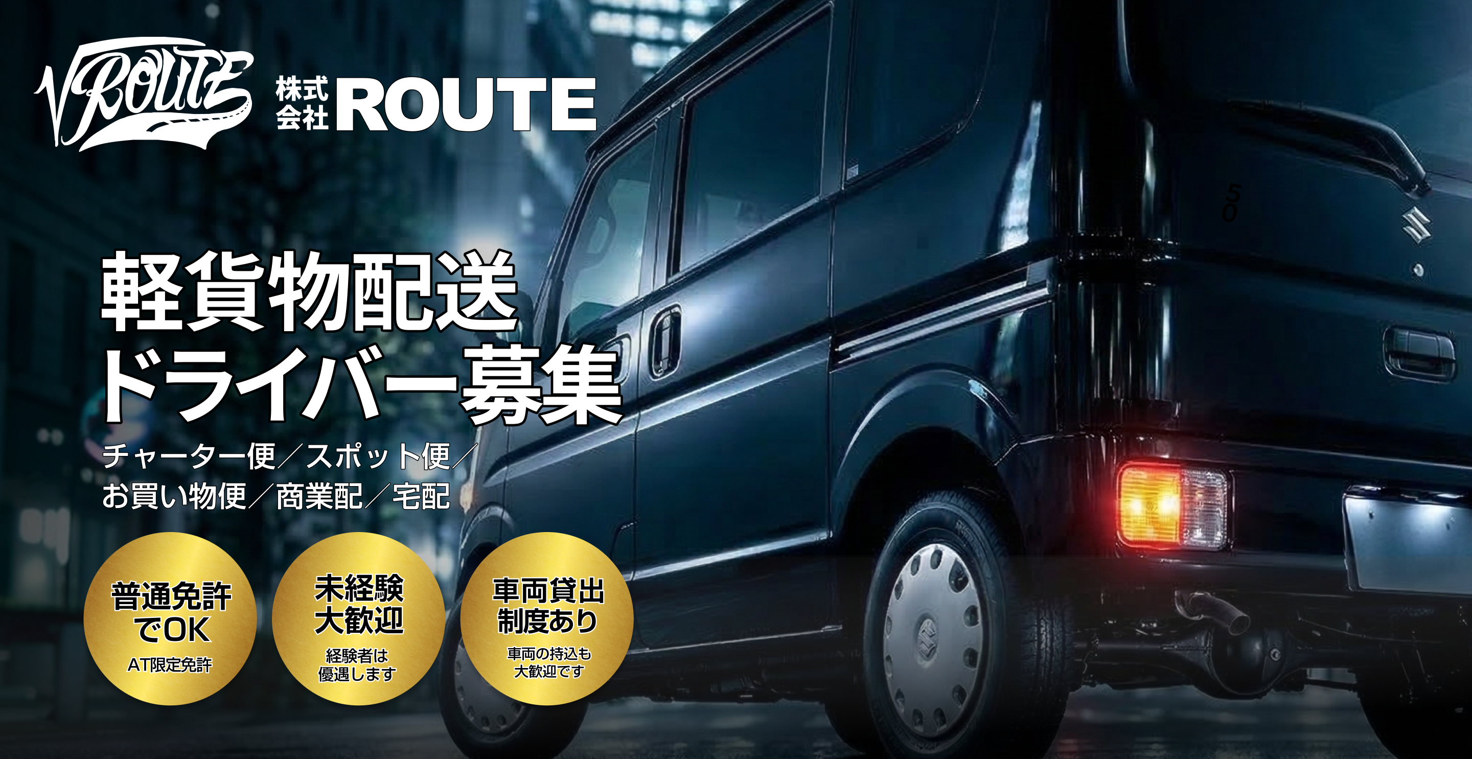 株式会社ROUTEでは、八尾、平野、生野、住吉エリアを中心に軽配送ドライバーを募集しています。
